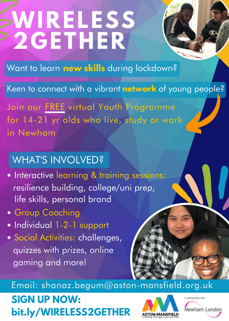 We’ve launched a new virtual youth programme to support young people during lockdown. You’ll be able to make new connections and learn new skills, while having lots of fun! To sign up, click the following link: http://bit.ly/WIRELESS2GETHER