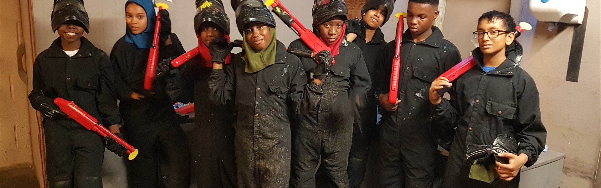 The two-day programme started at 10am (we thought they may like a lie in), with air hockey, pool and general ‘hanging-out’. Then we were off for our inaugural Transitional Youth trip to Bunker 51 for a spot of indoor paint balling. The last game of paintball required the children to elect a President to be protected by one team and attacked by the other. The president didn’t seem to get much protection! We saw her afterwards, she had paint everywhere! We cooled down at with a visit to the Shake Shack for milkshakes or ice cream and a crack at their table tennis and table football before making our way back to the Froud Centre to finish off the day. A good start to the project and to developing a good group dynamic.